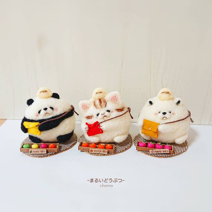 『フルーツを買いに来たパンダ』 『オレンジを買いに来た猫』 『リンゴを買いに来たシロクマ』です🍎✨ ●◯●◯●◯●◯●◯●◯●◯● 【Hale Marche/ Premium Edition】 ・参加期間:第1期7/01(木)から14(水) ・開催場所:ルミネ北千住6F aozorakoten.com/hale/products/… #羊毛フェルト #ハンドメイド