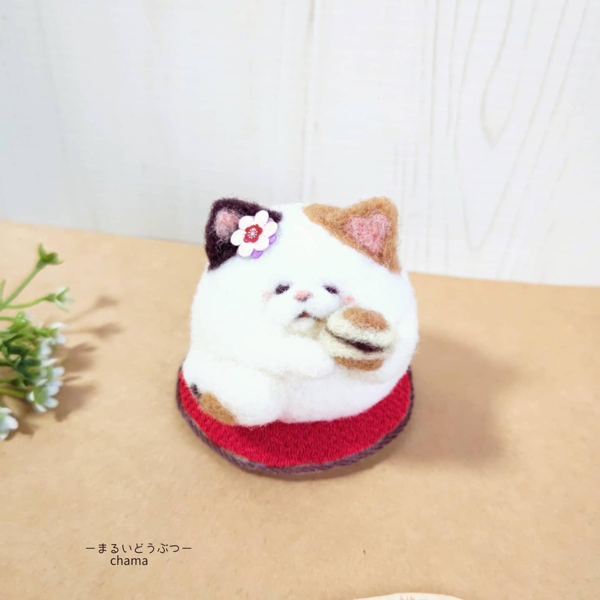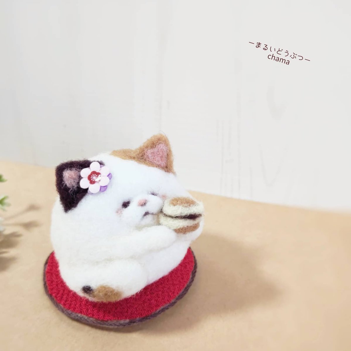 【#Kawaii 和菓子展】に参加します✨ ●開催期間:1/8(月)~1/23(日) ●場所:#ArriveeetDepart(アリヴェデパール)自由ヶ丘店 写真は『どら焼きを持った #三毛猫 』です😺 arrivee-et-depart.com #羊毛フェルト #ハンドメイド