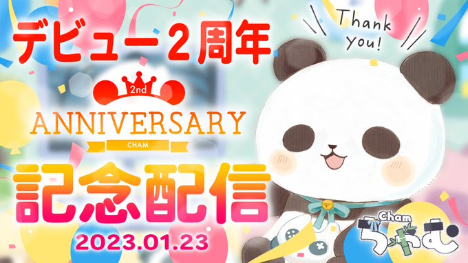 🎋お知らせ🎋 1月23日(月)12:00~ 「デビュー2周年記念配信」🐼🎉 ちゃむの事を見つけてくれてありがとう♡ これからも楽しい思い出を作ろうね✨良かったら浮かれパンダをお祝いしに来て~♡ 記念グッズや重大発表の告知もあるよ! #ちゃむ #ちゃむライブ ▽待機所▽ youtu.be/smJHEEnY8ZM