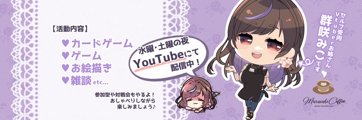 【#群咲みこ Links】 ☕YouTube:youtube.com/channel/UC6w7D… 💜FANBOX:chamicoro326.fanbox.cc ☕BOOTH:mikomurasaki.booth.pm 💜pixiv:pixiv.net/users/61976260 ☕Skeb:skeb.jp/@chamicoro326 💜マロ:marshmallow-qa.com/chamicoro326?u… ☕ほしい物:amazon.jp/hz/wishlist/ls… 💜Steam:store.steampowered.com/wishlist/profi…