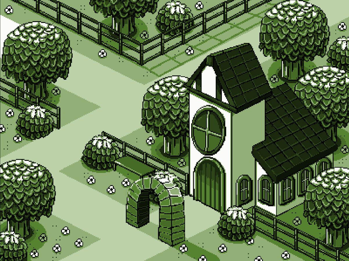I like this monochromatic gameboy-style palette ^^ #pixelart #gameboy #backgroundart #isometricart