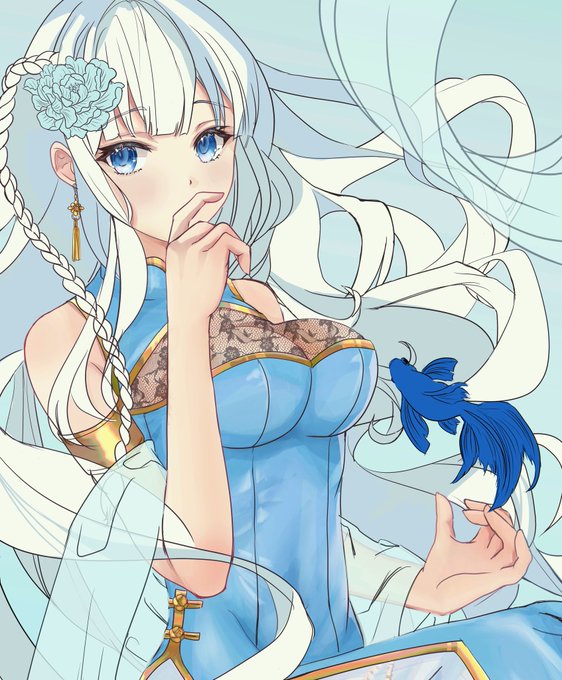 お疲れ様です 次は水の中で泳ぐ金魚姫を描いています🐠 髪色は黒髪か白髪が多いのですが、どちらにしようか、逡巡しています☺️ 暖かくなってきたのは、嬉しいですが花粉の気配が漂ってきたような💦 #みんなで楽しむTwitter展示会 #冬の創作クラスターフォロー祭り #イラスト