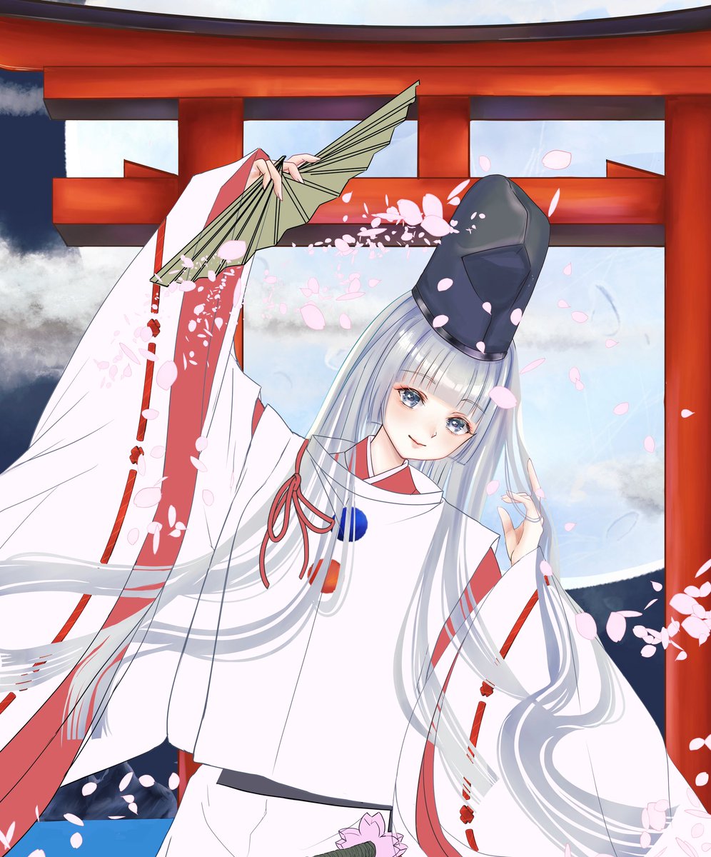 お疲れ様です☺️ 白拍子の立烏帽子か、狐耳🦊か迷いながら鋭意作成中です✨️✨️ 週末は暑くなるそうですので、体調管理にお気を付けてお過ごしくださいね😊 #みんなで楽しむTwitter展覧会 #春の創作クラスタフォロー祭り #イラスト