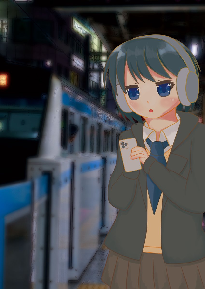 #今月描いた絵を晒そう うちの子シリーズ2人と通学中のボーイッシュjkちゃん