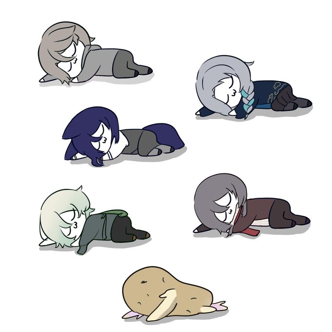 8 23 お絵描き垢で気圧に弱そうな個人Vを落書きしてたので、まとめてスヤァさせといた 草、今日気圧やばいし眠いね 23/04/07 15:24