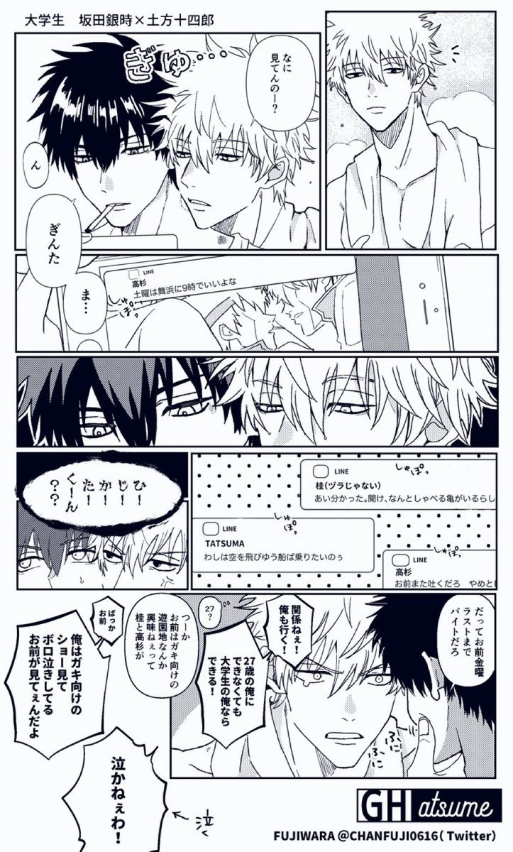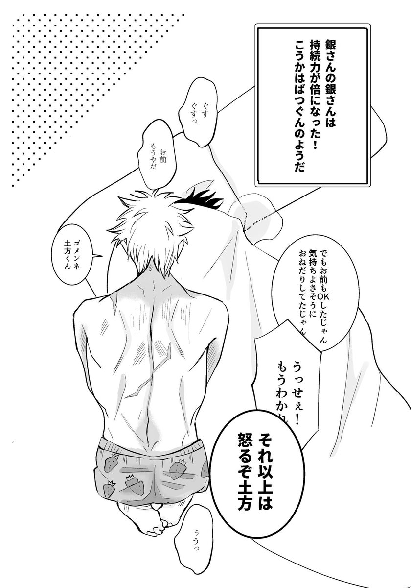 #銀土夏の思い出週間 銀「ホラーなんて子守唄だからね!俺なんか寝る前に毎晩みてっから!なんなら今から俺ん家で一緒に見るゥ?!」 土「あぁそうだなそろそろホラー見ねぇと禁断症状出そうだったんだわァ!」 からの銀土