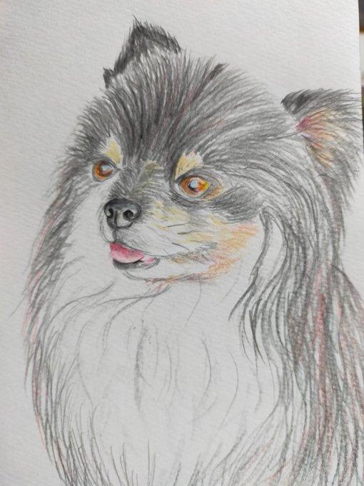 お正月にやろうと思っていたことー! 自分ちのわんこの絵描きました🐕 #ポメラニアン #色鉛筆画