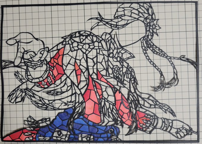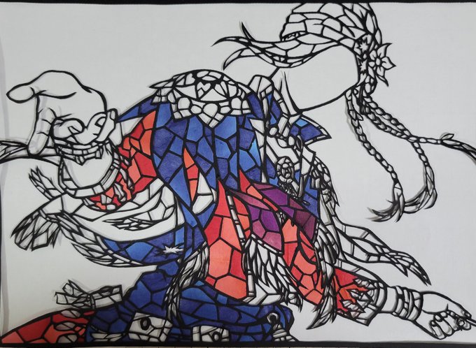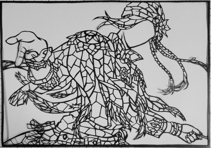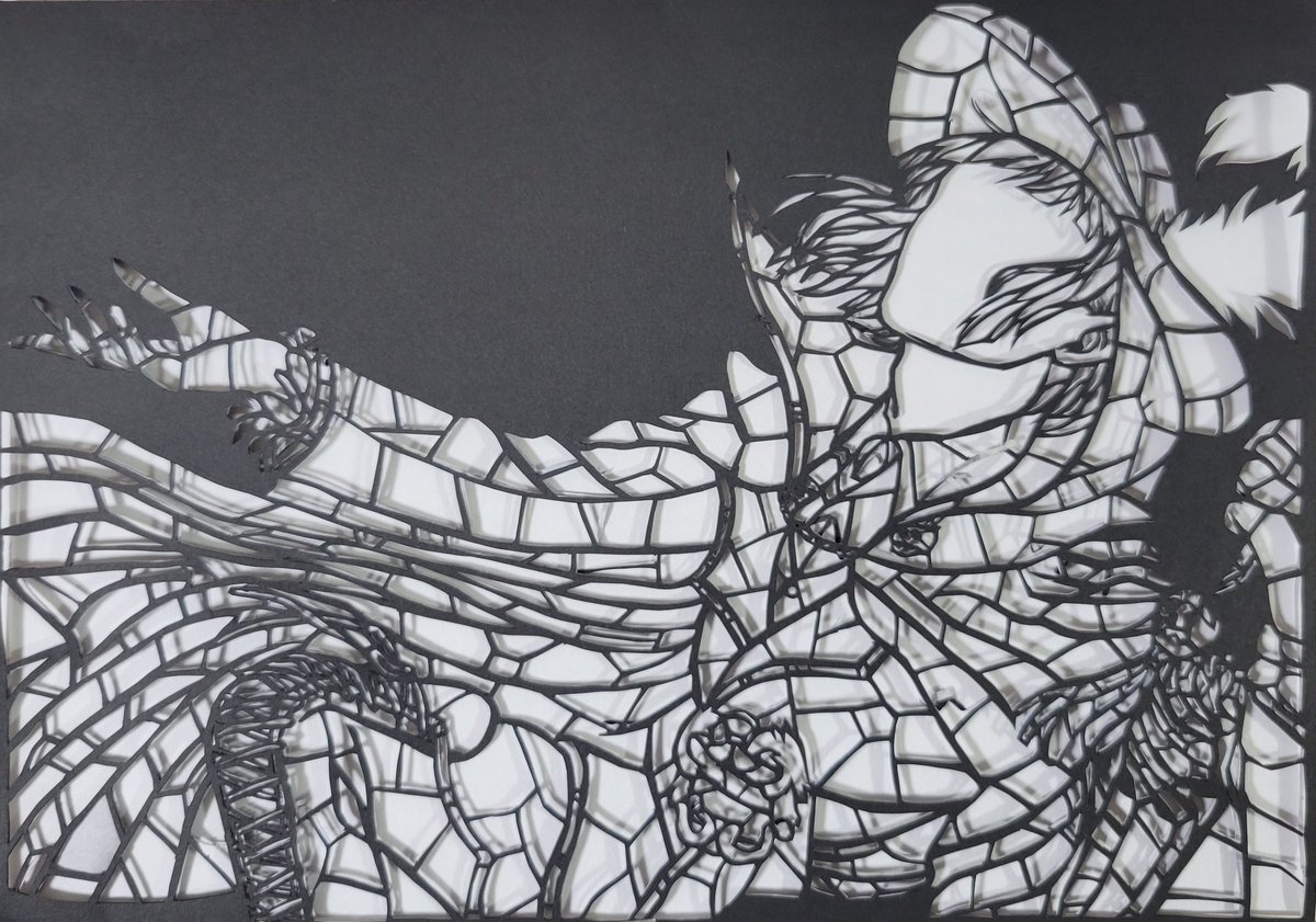 製作時間1️⃣2️⃣時間 友達と通話しながら 夜な夜な進めました😁 パーツを貼り付けるのに 紙とにらめっこ😠 ジグソーパズルの様な 気分になります🧩 #ツイステファンアート #ツイステファンアート #切り絵 #ルーク