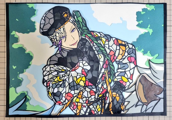 ギリギリ間に合わなかった ルークの切り絵✂️ 和紙(一部画用紙)で 色付け終わったよー😭 製作時間は 合計1️⃣2️⃣時間ぐらいです😓 #ツイステ #ツイステファンアート #ルーク・ハント誕生祭2021 #切り絵