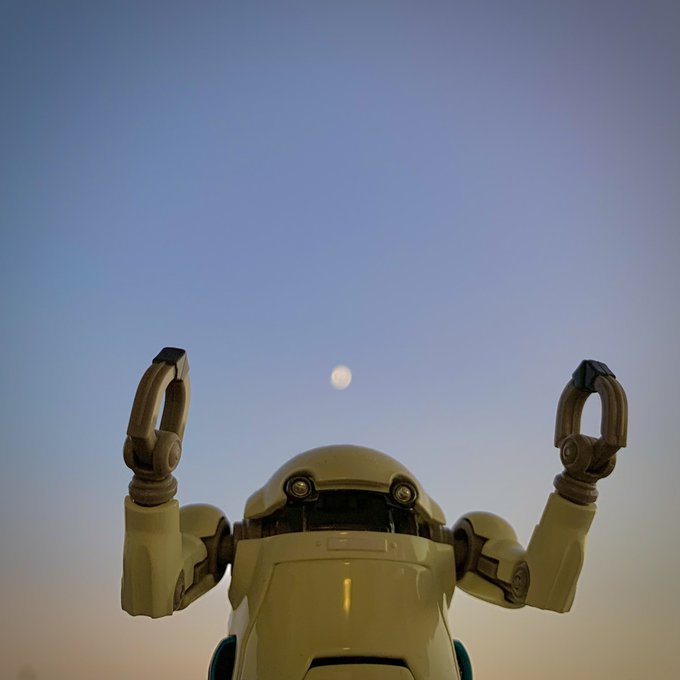 日が落ちていく〜 三日月だったけどスマホで撮ったらまんまる🌕 #メカトロウィーゴ