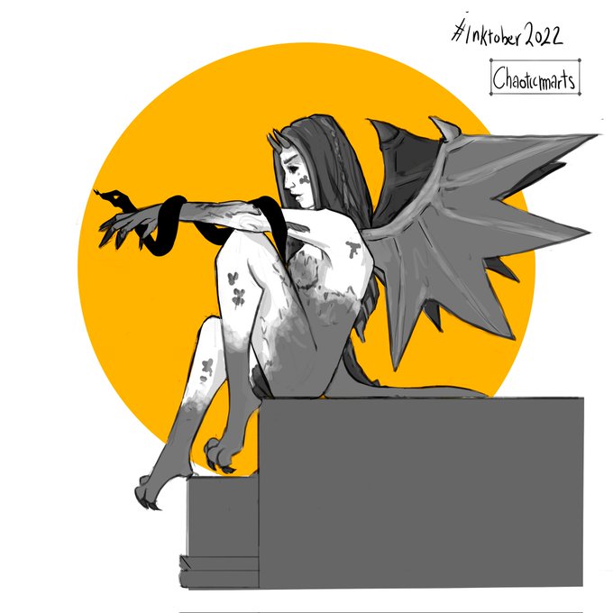 Day 1- Gargoyle I actually got inspired by the gargoyles of notre dame!! They kinda look spooky and adapt into a very witchy and femenine gargoyle :3 #inktober2022day1 #Inktober