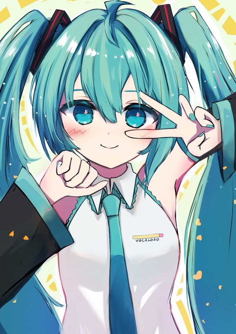 277 1939 笑顔でピース💚 #初音ミク #イラスト 23/06/28 15:19
