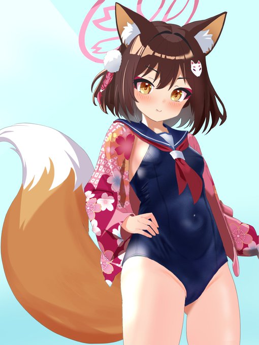 先生な...水着イズナ大好きだけどスク水も好きなんだ... #ブルアカ