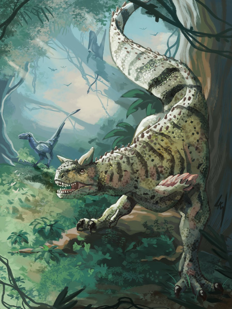 #Carnotaurus - in preparation for the final episode of #PrehistoricPlanet 💖 This abnormal creature just so happens to be my favorite dinosaur, and I CANNOT WAIT to see them in action tomorrow 😩😩 #paleoart #paleontology #dinosaur #dinosaurs #digitalart