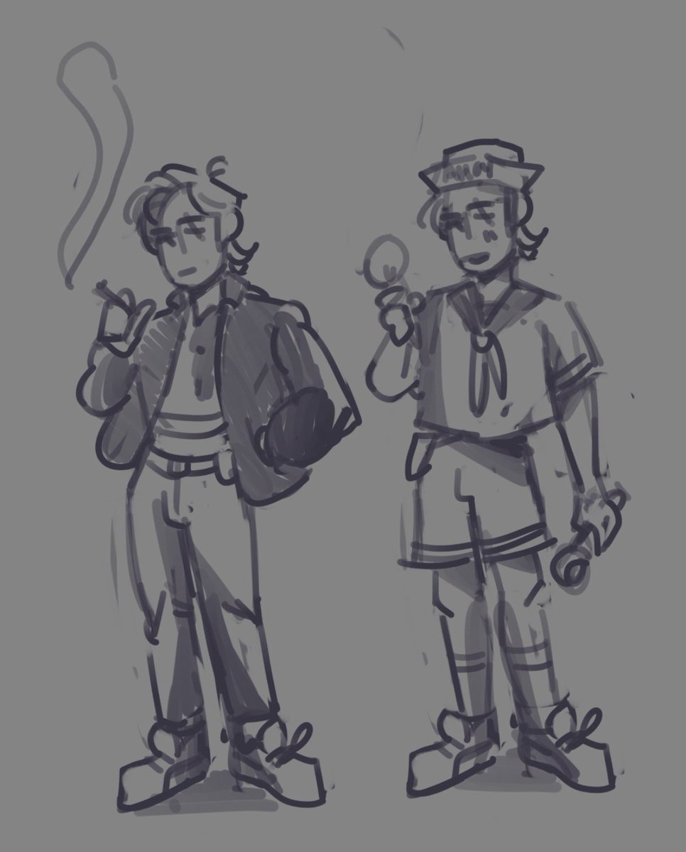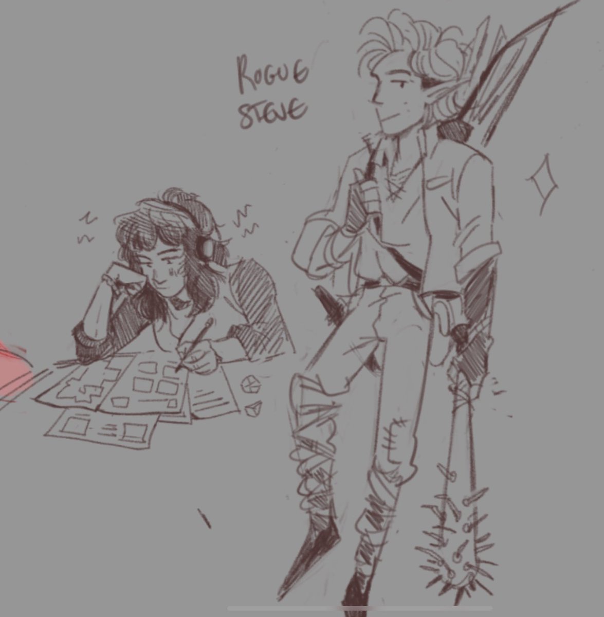 more doodles i am surrendering to the void: eddie is making a new npc for the new campaign who is not very good at stealth