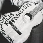 the acoustic guitar in eddie's room paying homage to woody guthrie's but guess they made it netflix appropriate