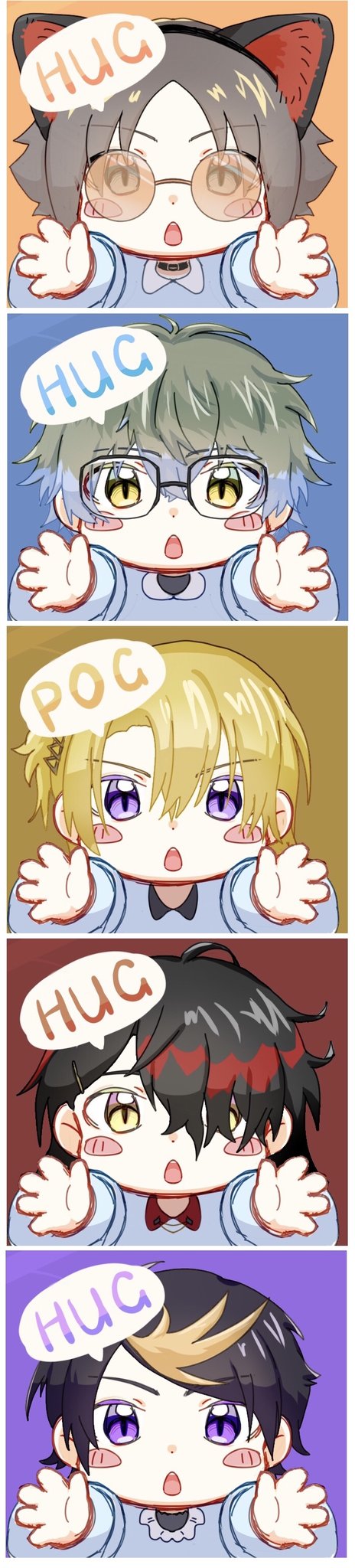 Luxiem 幼儿园!HUG or POG 大家都太可爱了🧡💙💛❤️💜🥺 推特有发图张数限制,等下分开发每个人带字和不带字的版本! #Luxiem #MystArt #drawluca #Ikenography #YaminoArt #Akurylic #Kindraw