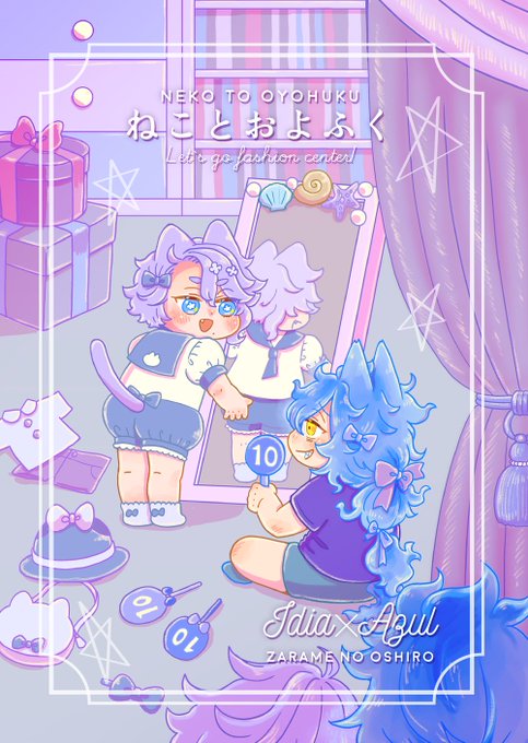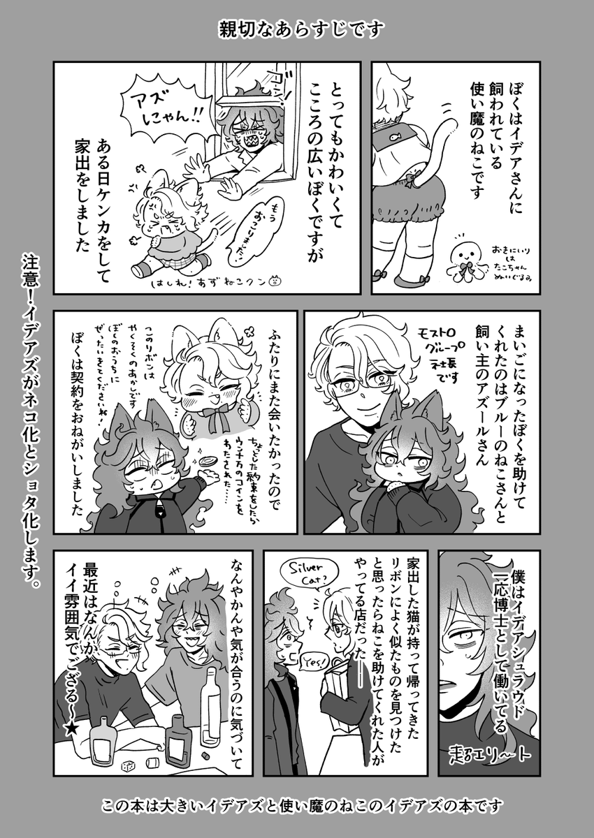 (1/2)6/25内緒のサマリー新刊サンプルです🌈大人のイデアズが洋服屋に行ったり、ちび猫のイデアズがわちゃわちゃする本です🌷B5/32P/500円(会場価格)🍬今回はイベント限定でキラキラシールのノベルティを作りました✨通販は後ほど〜よろしくお願いします😺😺