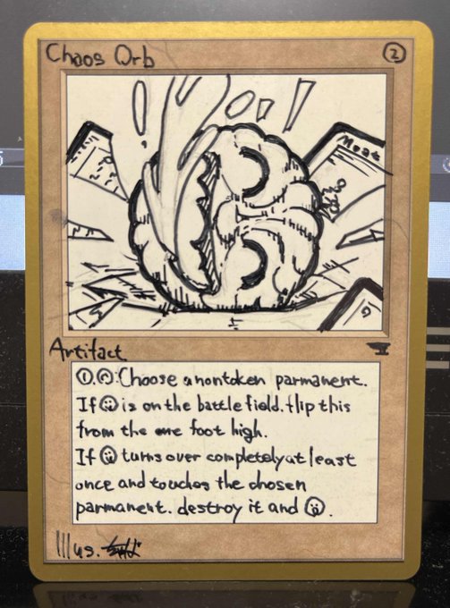 添削さん( @kakikukeko2131 )から「Chaos Orb投げるの流石にな……ってなってきたからプロキシ描いてくれない?」と依頼を頂いたので頑張って描きました!ニコニコのイラストのやつで!って頼まれたので凄い笑顔にしときました。