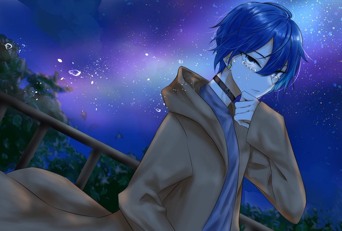#KAITO #VOCALOID #イラスト #私の作品もっと沢山の人に広がれ祭り #絵柄が好みっていう人にフォローされたい またKAITOを泣かせてしまった…。ちょっと治安悪めのKAITOです🍵 もうこれは私の性癖の塊よ……抗えぬ。