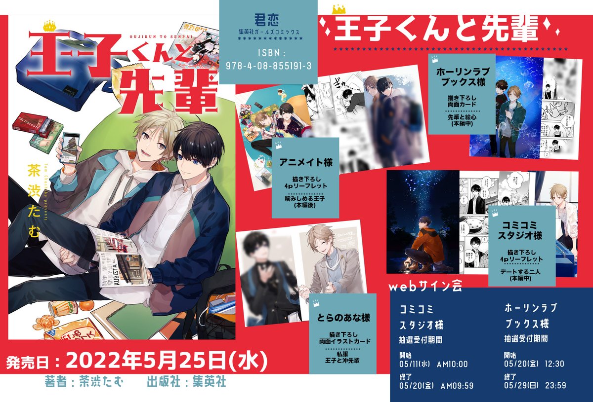 5/25(水)発売 集英社 君恋コミックス 『王子くんと先輩』 店舗特典の一覧と詳細です。よろしくお願いします! kimikoi.shueisha.co.jp/comics.html shueisha.co.jp/books/items/co…