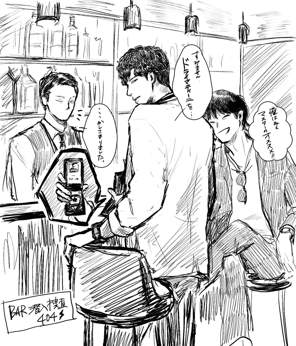 容疑者を追ってBARに潜入したヨンマルヨン🍸 洒落臭いsmkzmが見た過ぎる衝動に駆られた落書き twitter.com/chata08371426/…