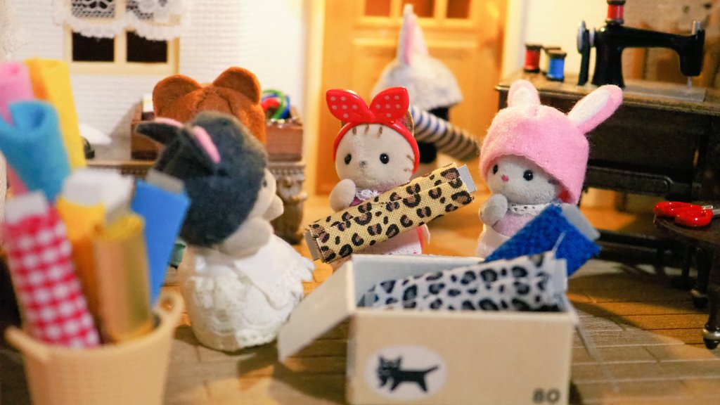 #私のシルバニアファミリー かわいいタグ シマネコもつかわせてもらうにゃ😺❣️ うちは みんな食いしん坊にゃ🍽️