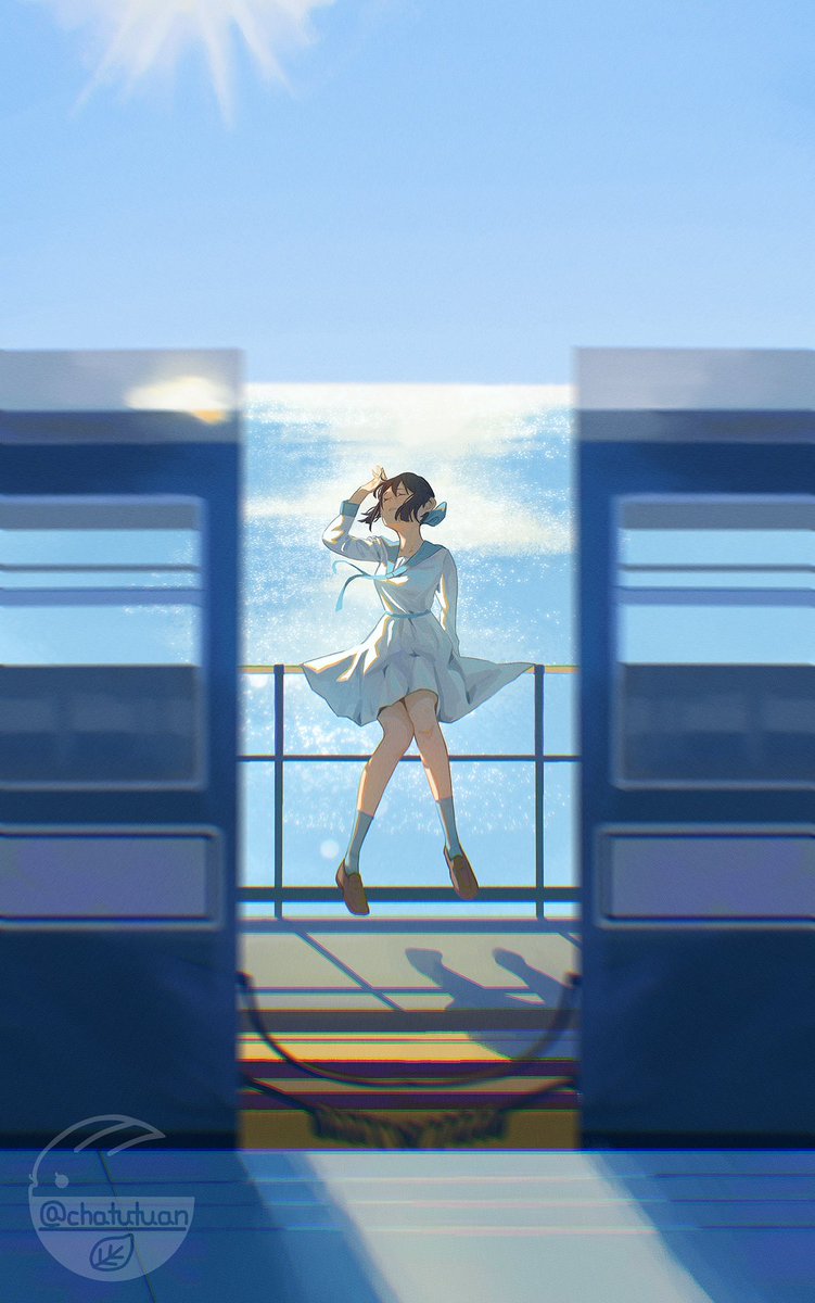 0 6 「夏の終わり、最後の海」 #イラスト #創作イラスト #オリキャラ #オリキャライラスト 22/10/01 14:04
