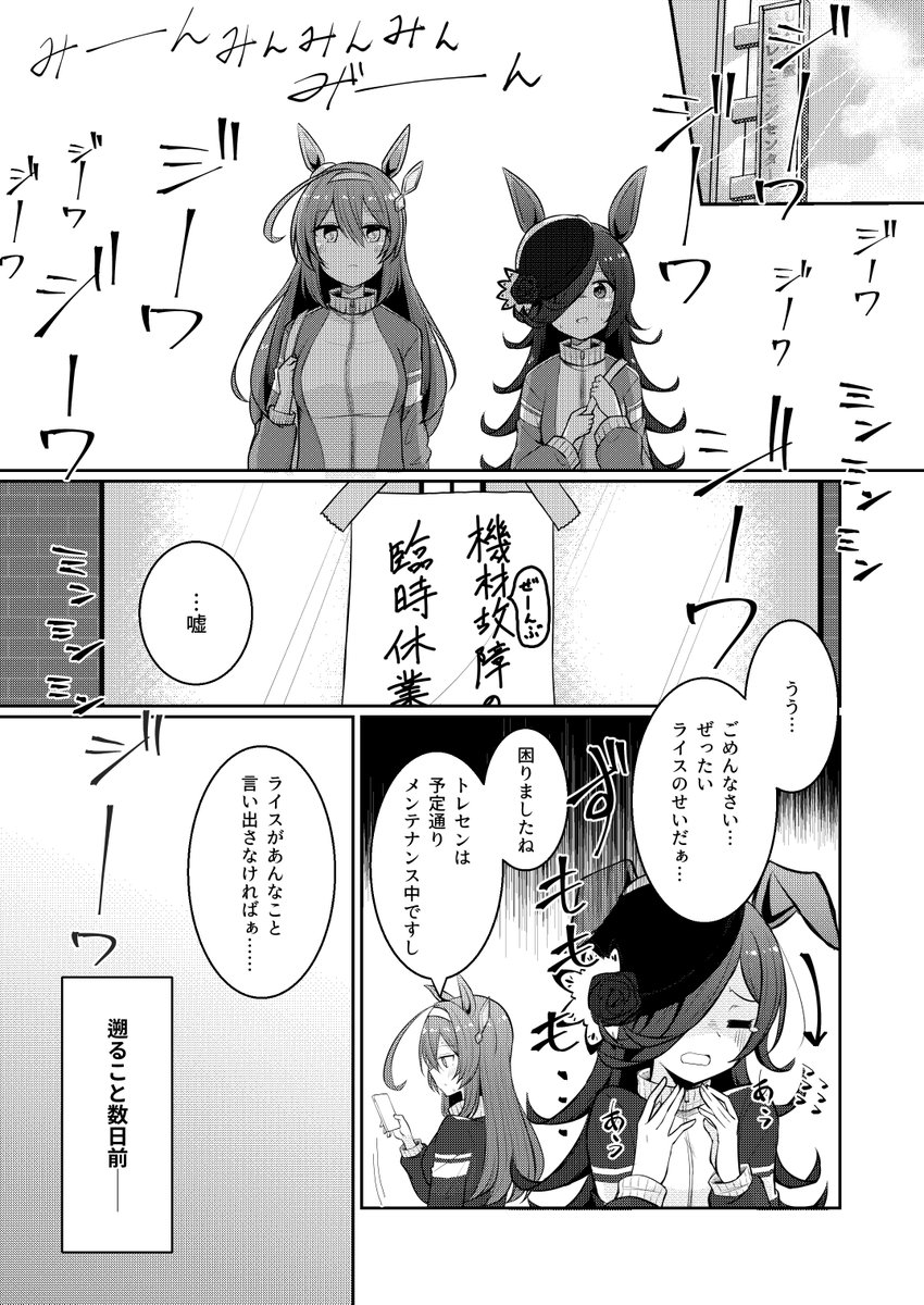 夏コミのウマ娘ミホライ本サンプルです 『夏のわがまま。』/B5/28p/500円 ほんの少し距離のある二人がひょんなことから夏デートに洒落込むことになっちゃう、ライスとブルボンのほのぼのいちゃつき漫画です。 もうちょっとだけ読めるpixivサンプルはこちらから→pixiv.net/artworks/10038…
