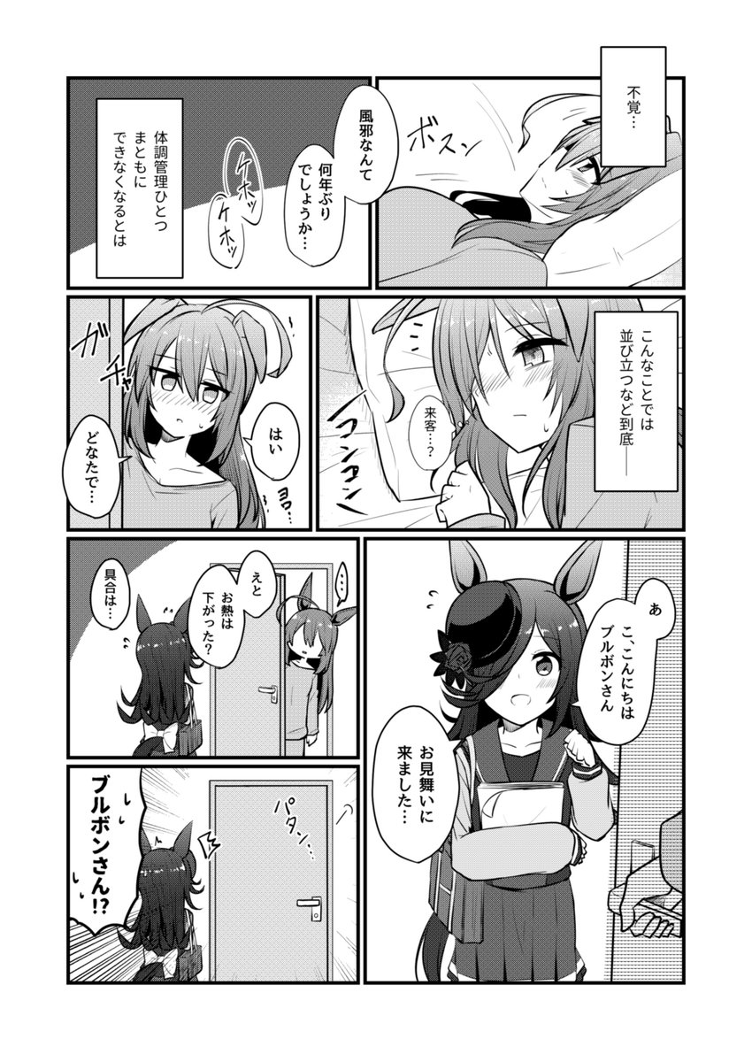 冬コミ1日目のウマ娘ミホライ本サンプルです 『星屑のプロローグ』/B5/28p/500円 ライスにレースで負けたブルボンさんが風邪を引いてしまうお話。ほんのり百合風味です。 本編が半分くらい読めるpixivサンプルはこちらから→pixiv.net/artworks/10395…