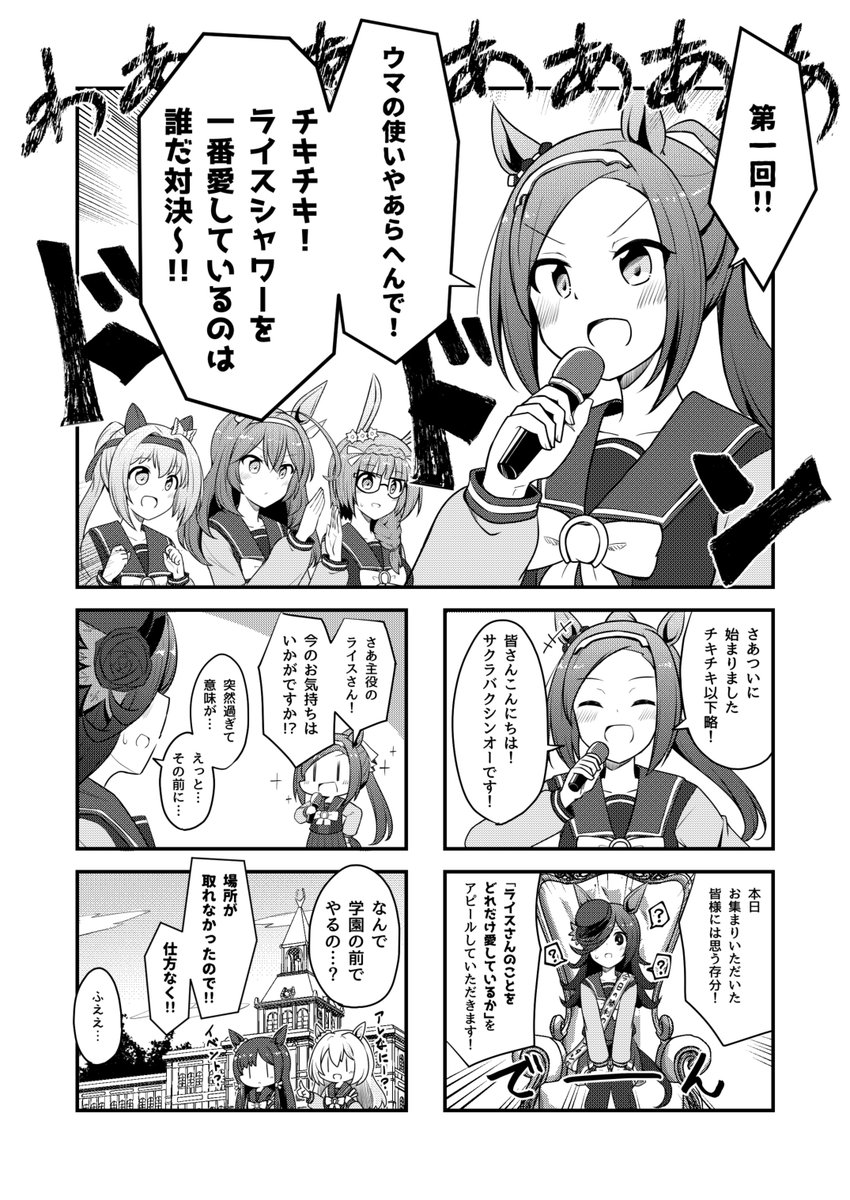 おまたせしました 明日のプリステ27Rの新刊です 『何度だって祝福を!』B5/24p/500円 ライスを全力で可愛がりたい5人のウマ娘によるしっちゃかめっちゃかコメディ漫画です。テンション高めでお送りします。 pixivサンプルはこちら→pixiv.net/artworks/10486…