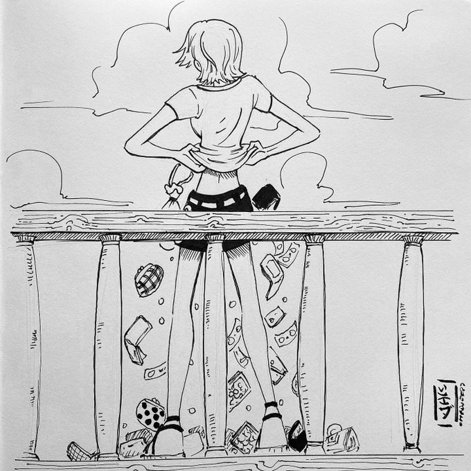 Inktober Day 22 - Heist . The most beautiful cat burglar and the best pathfinder you can find in One Piece. Nami. . #inktober #inktober2022 #inktoberday22 #inktober2022heist #nami