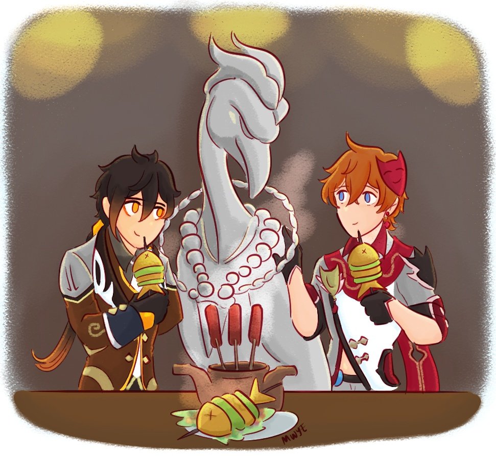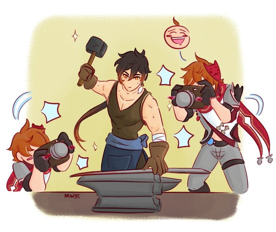 So Zhongli said he enjoys smithing 🔥 #tartali #zhongchi #childe #tartaglia #zhongli #genshinimpactfanart