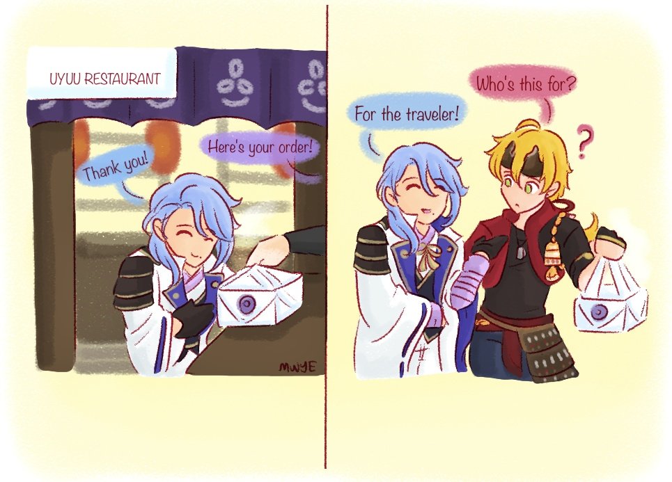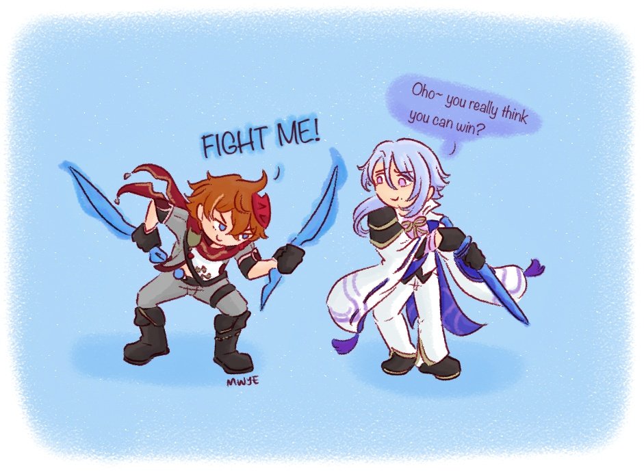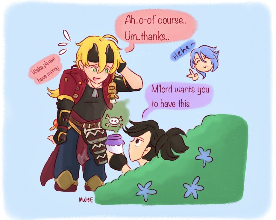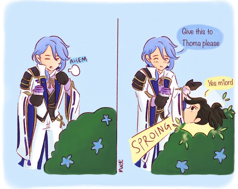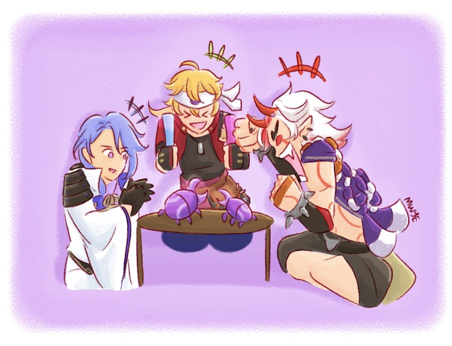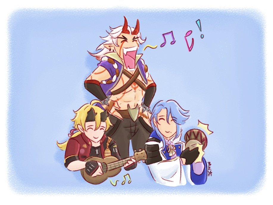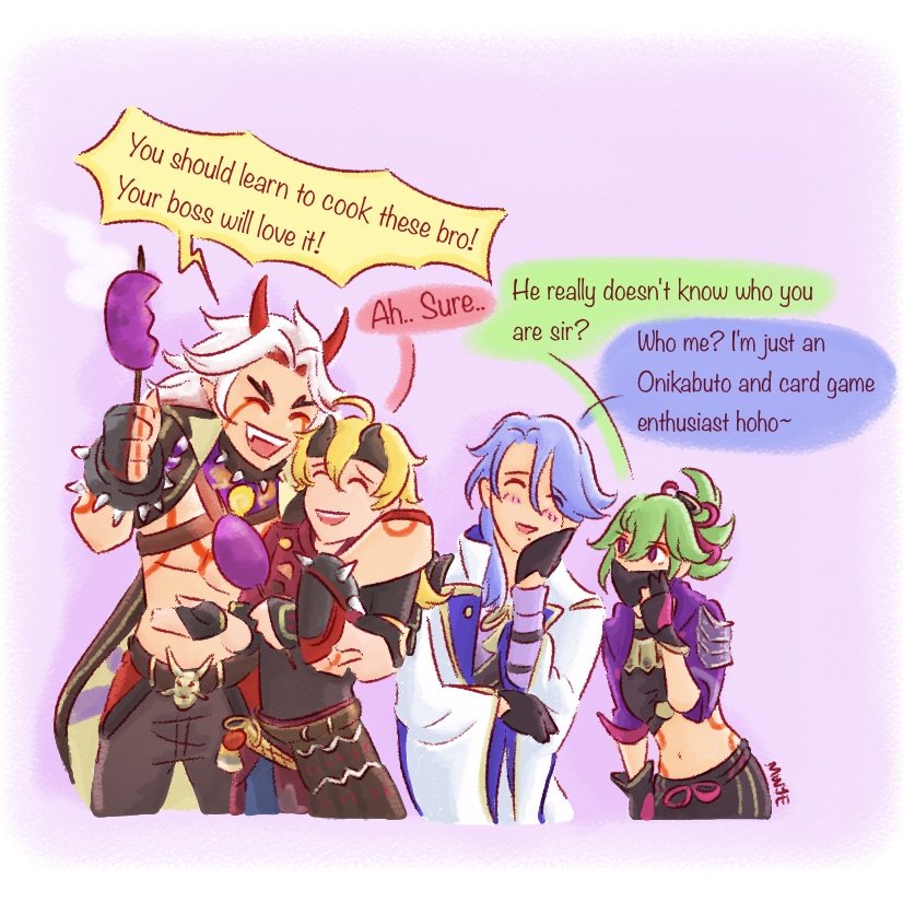 Headcanon that Itto remains oblivious that Ayato is Thoma's boss and keeps making them hangout together so they can all make friends 😆 #genshinimpactfanart