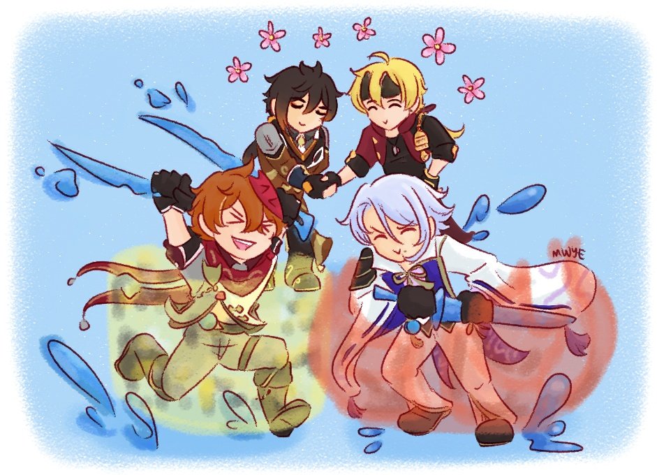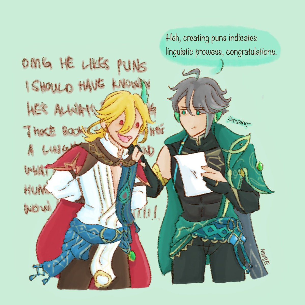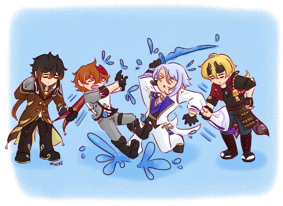 Happy birthday Tartaglia! I've had no time to draw anything new so here's some past drawings of Tartali being silly #タルタリヤ生誕祭2022 #childe #tartaglia #zhongli #tartali