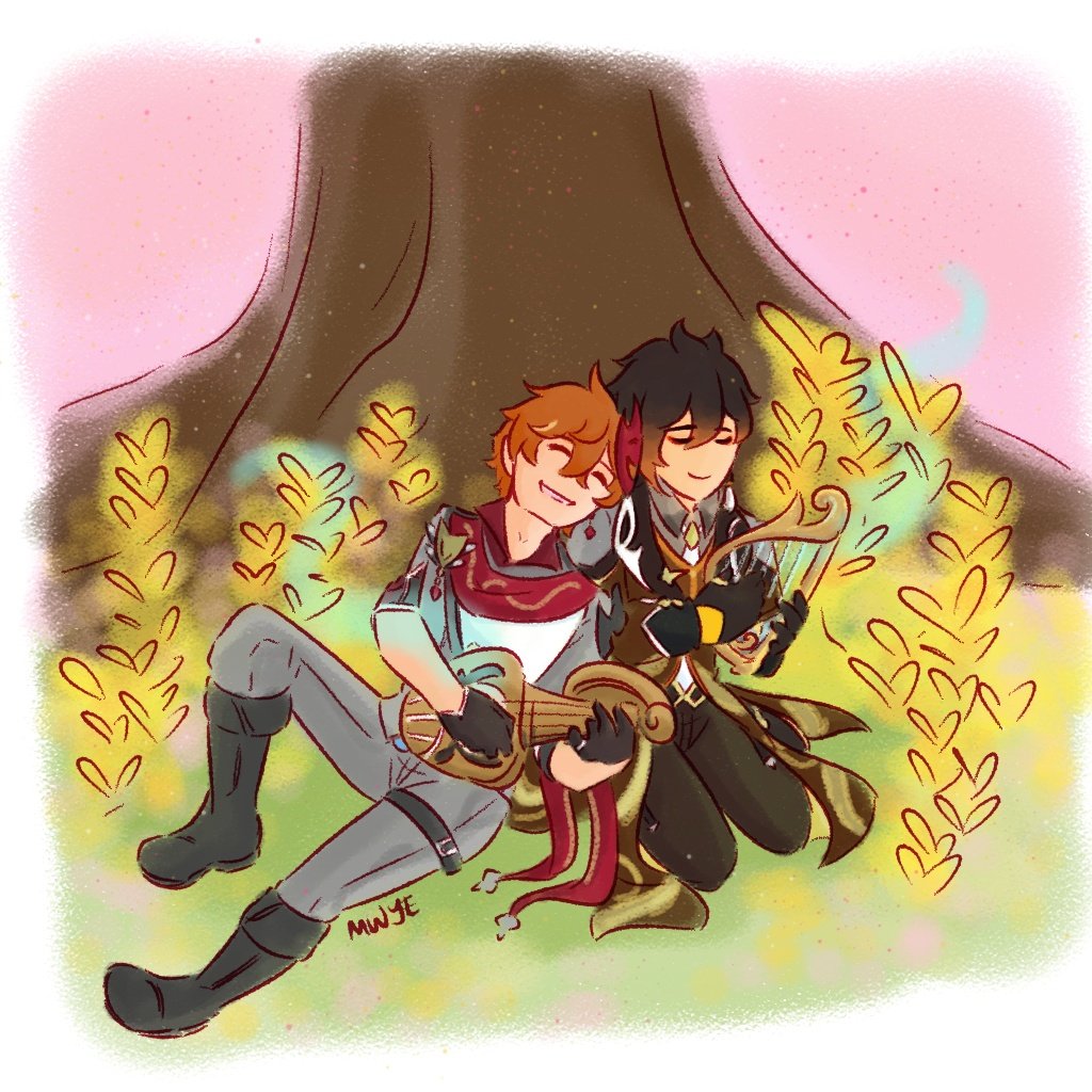 Happy birthday Zhongli! (1/2) #AWishForZhongli @tartaliweek #鍾離生誕祭2021 #tartaglia #Zhongli #genshinimpactfanart