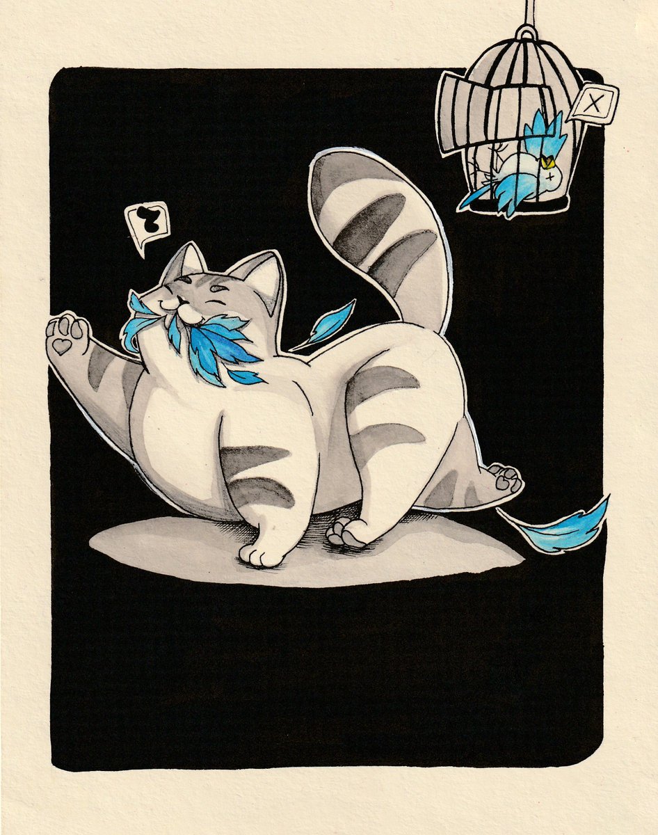 День3: Громоздкий Кошатники знают, о чем я🤣 Не стоит оставлять открытые коробочки, даже маленькие😅 #inktober2020 #Inktober