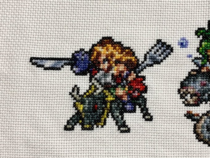 1 0 最近クロスステッチを投稿していませんでしたが マイペースで少しづつ進めています 2月あたまには3人並べたい! #クロスステッチ #刺繍 #ロマサガRS #新ロマサガRS #ドット絵 #pixelart 23/01/20 16:58