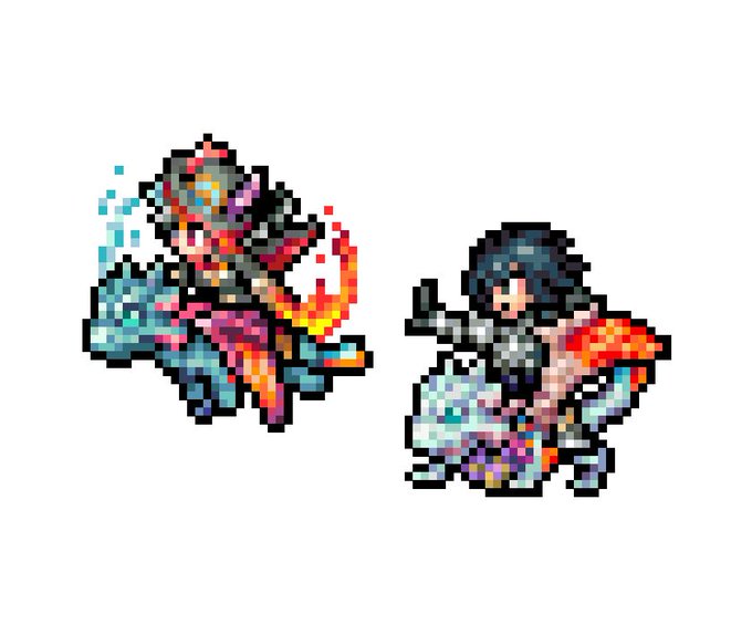 ジョー玄ちゃん & バート氷雪を並べてみた! これがやりたくて2人のドットを作っていました 大満足!いつかクロスステッチで作ろう バートが 待ってー って言っているようにも見える? #ロマサガRS #新ロマサガRS #ドット絵 #pixelart