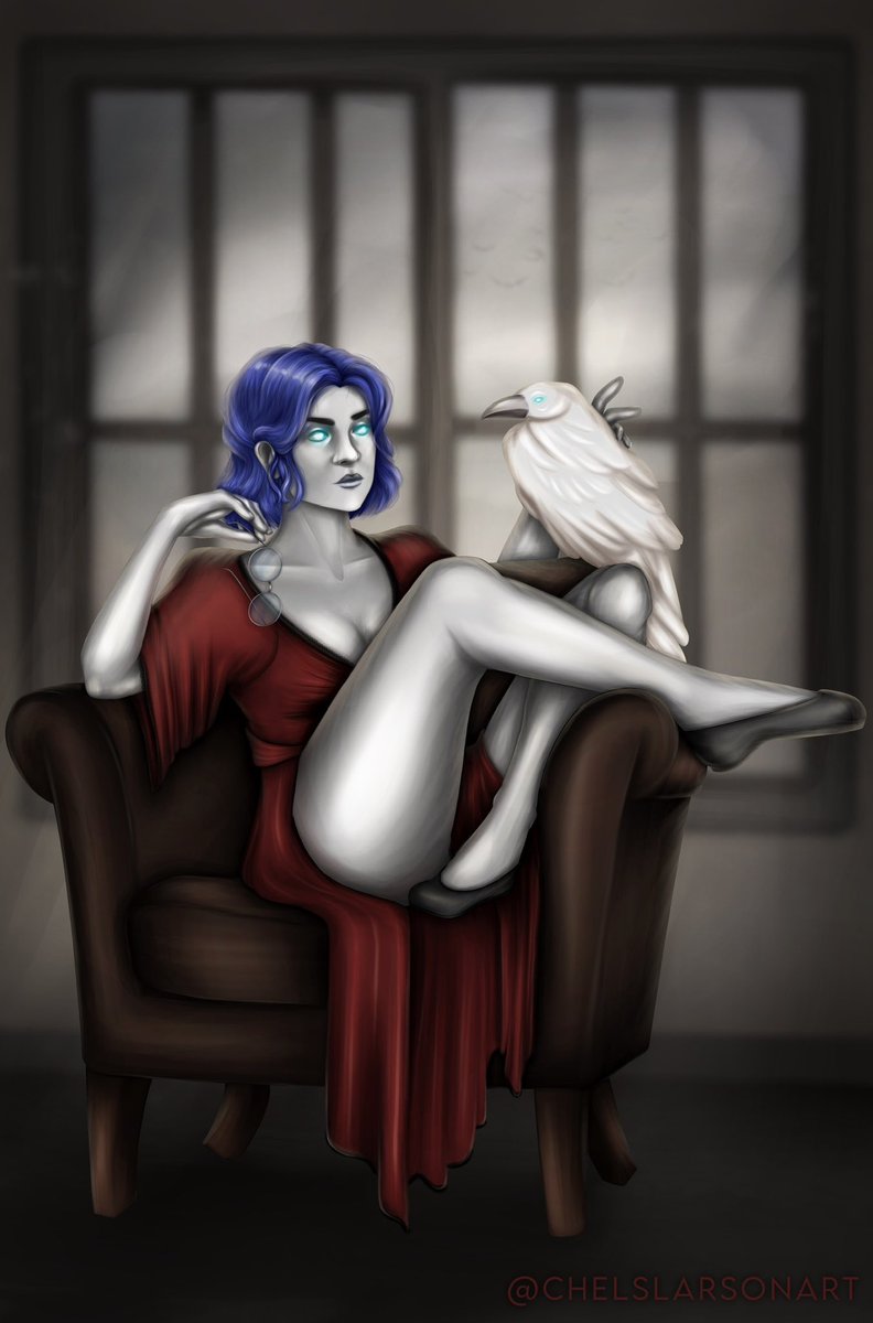 Sasha gets a Halloween costume also. Karu had a lot of fun putting effort into making theirs. Sasha threw on some things she already had to make it look like she’s participating. 👀 She lives in Barovia. Halloween is basically just another day. 🤷 #dndart #dndoc #characterart