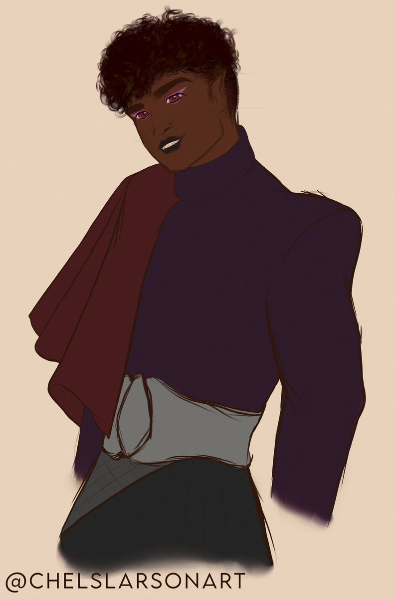 I don’t share sketches much here (mostly just on ko-fi), but I just don’t want to wait to introduce my newest OC. Meet my Dhampir Shadow Sorcerer, Andreas. He’s clumsy and oblivious, but a real good time. 💜 #DnDcharacter #dndart #oc