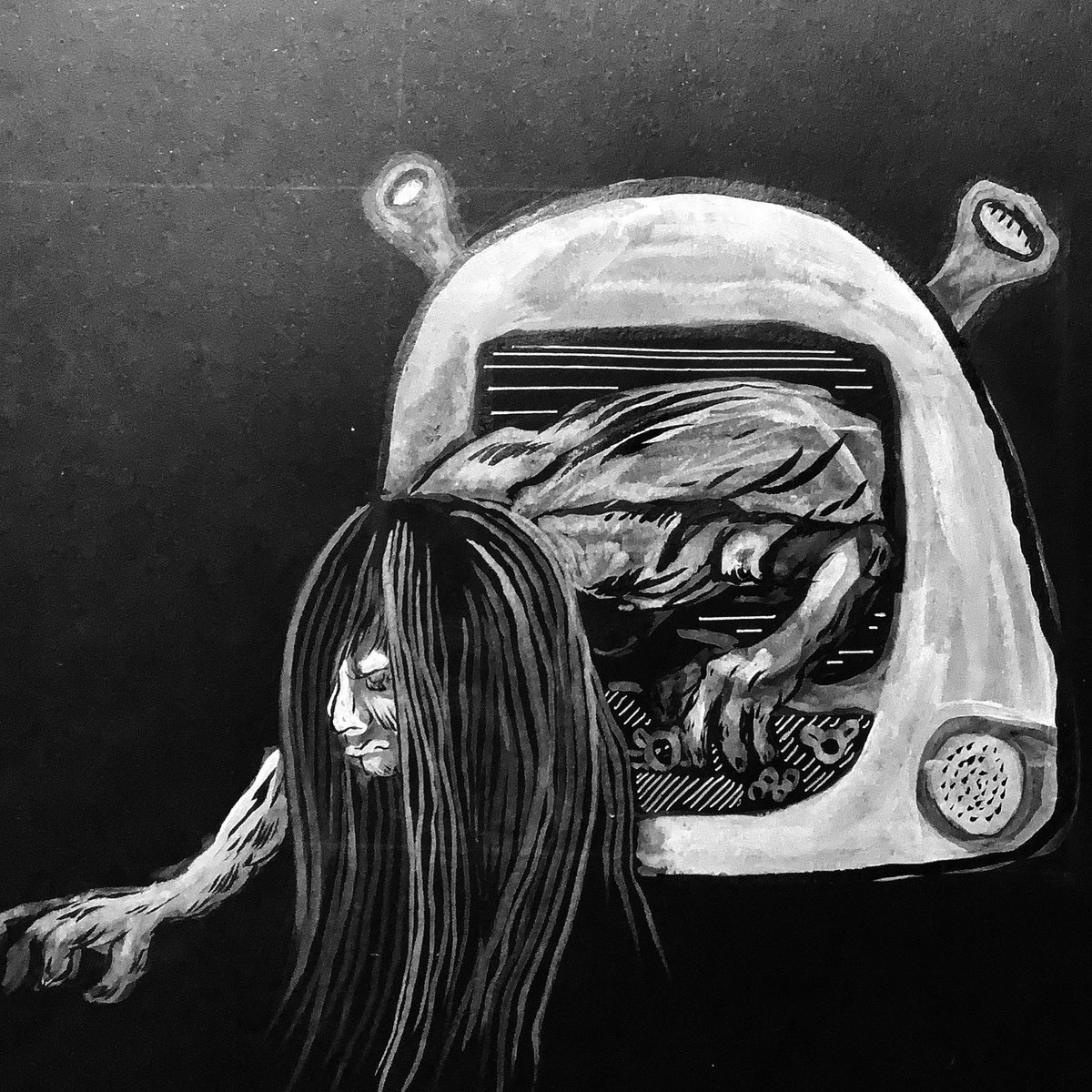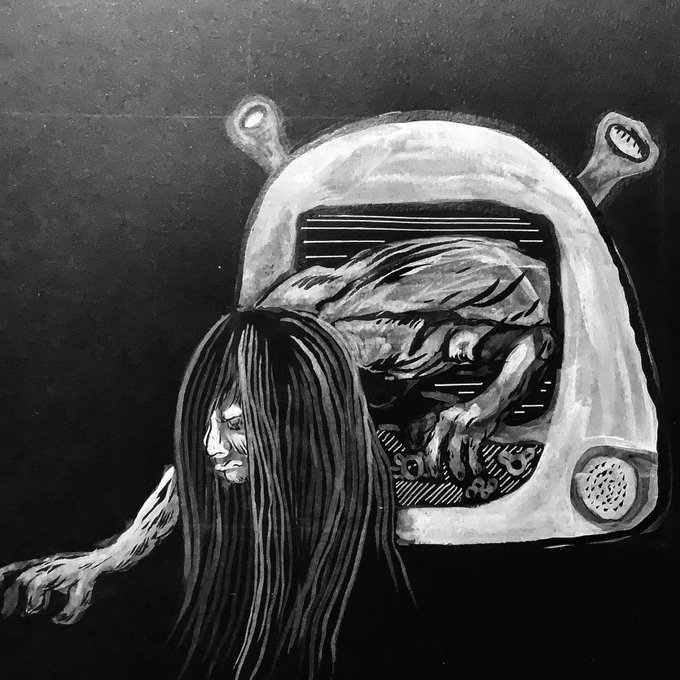 10 23 #inktober2021 samara coming out of a Shrek crt tv 21/10/21 09:35