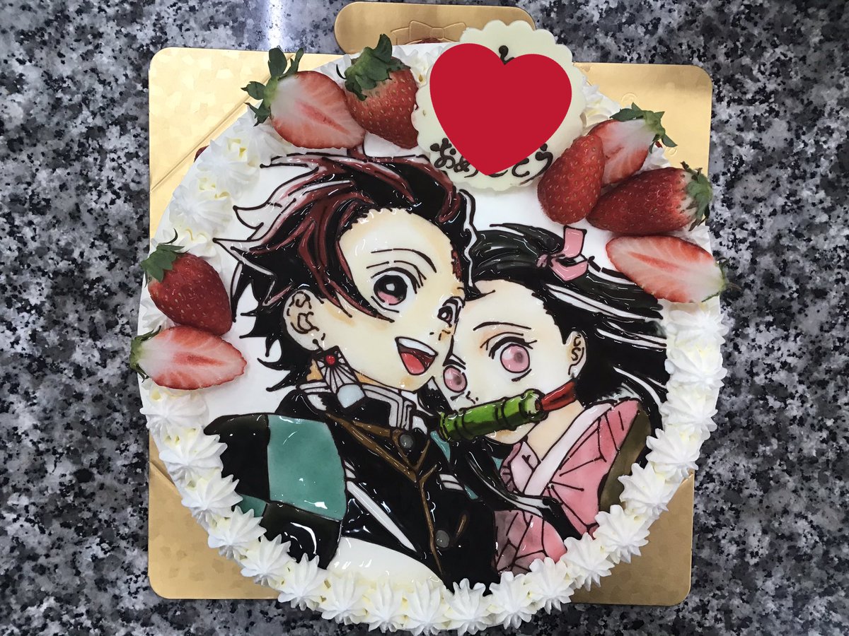 7 53 今日のお絵かきデコレーション🎋🎉🎂 今日のは7号と8号サイズを描きました😊 #鬼滅の刃 #竈門炭治郎 #竈門禰豆子 #シェーヌのお絵かきデコ 20/11/29 17:43