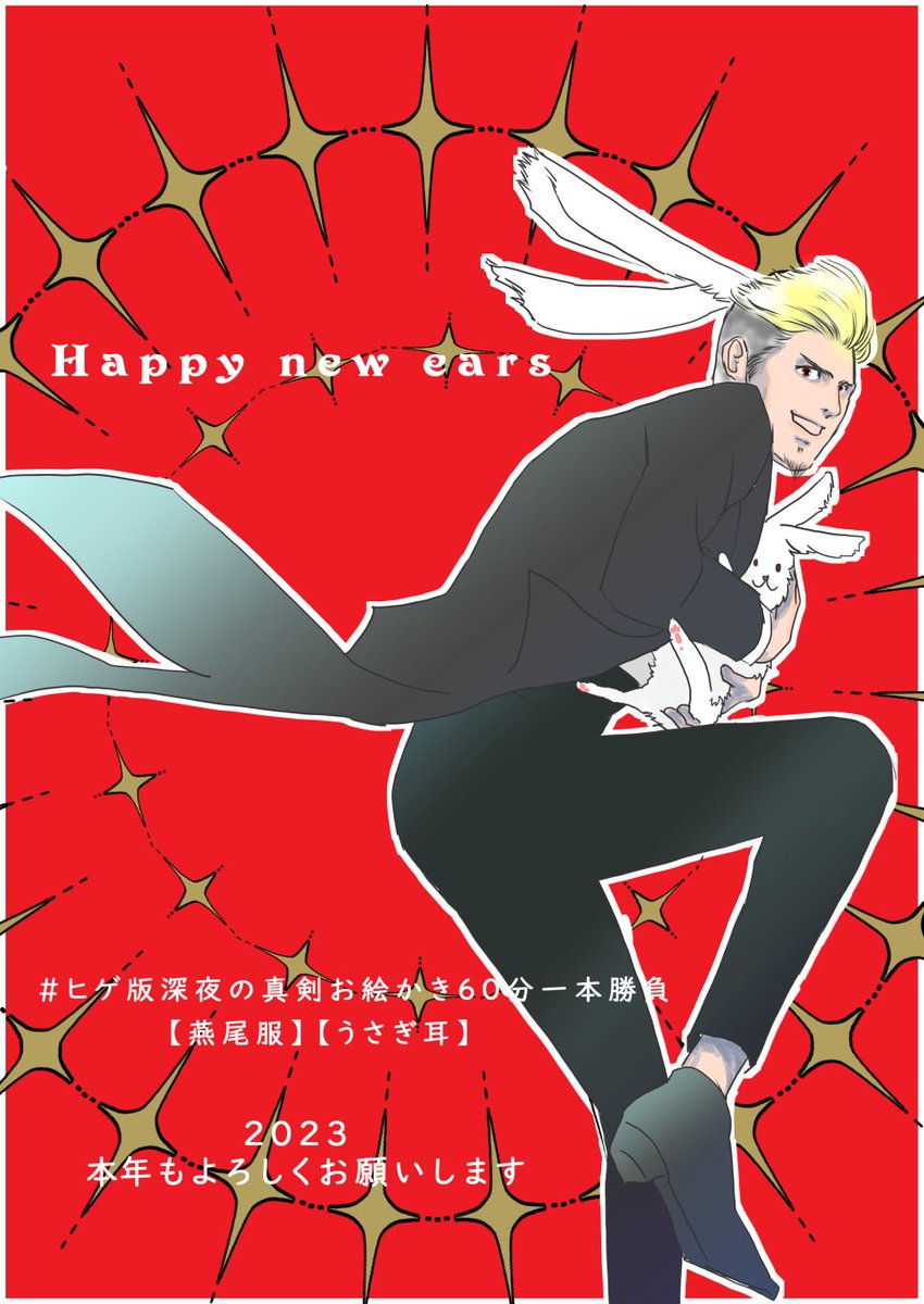 【再掲】 すいませんすいません!! ヒゲレイヤーが落ちていて💦 こちらがヒゲ版です!!🥶 #ヒゲ版深夜の真剣お絵描き60分一本勝負 お題 【燕尾服/Evening Tailcoat】 【うさぎ耳/Bunny Ears Headband】