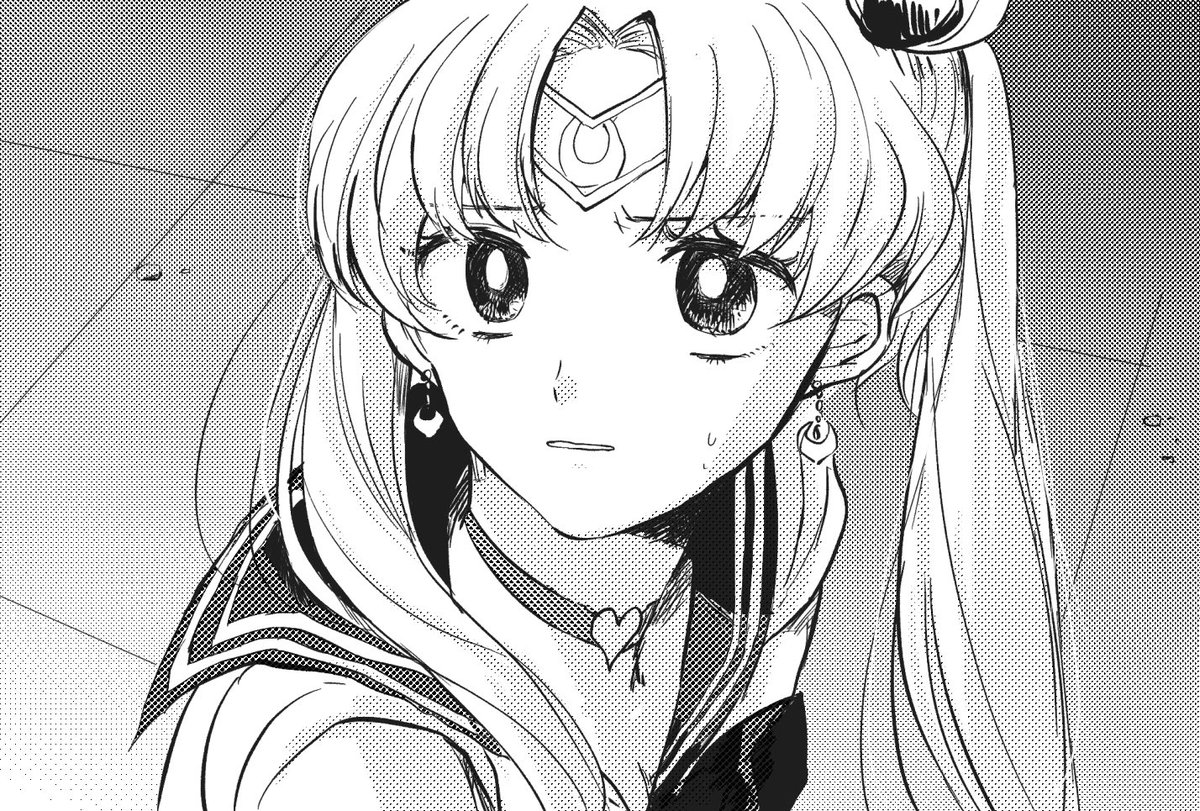 流行りのやつ描いたよ 小学生ぶりにこんな真剣にセーラームーン描いた気がするよ…白黒でごめんね… #sailormoonredraw