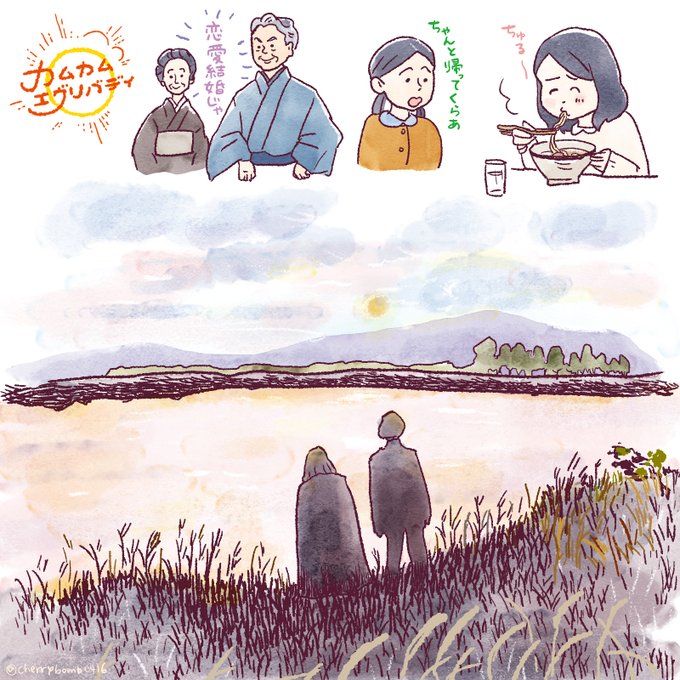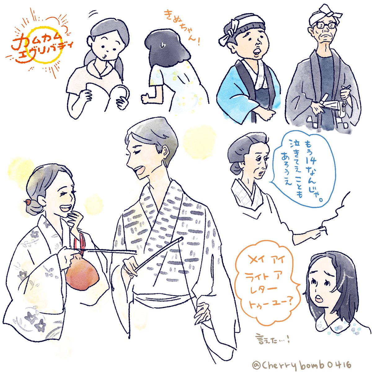 「何?用事って」って聞かれてるのに無言でしらばっくれるきぬちゃん、好きだよ…!鉦を鳴らすおじいも吉右衛門くんも良い〜。夏祭りのシーン、甘美で夏の終りの儚さもあってため息が出てしまう。安子ちゃん、覚えたての英文で気持ち伝わってよかったねえ! #カムカムエヴリバディ #カムカム絵