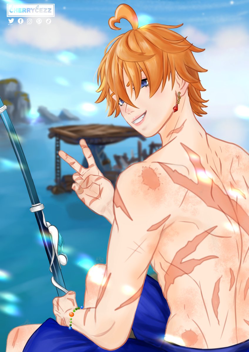 💙Oh? If it isn't Traveler, care to join me? First to get 20 fishes get's a present! 🌦️You stole our boat, ginger boy. 💙Oops haha! Childe's vacation in GAA too. ℍ𝕒𝕡𝕡𝕪 𝔹𝕚𝕣𝕥𝕙𝕕𝕒𝕪 𝕋𝕒𝕣𝕦𝕥𝕒𝕣𝕦💙🎂🥳 #Genshinfanart #Childe #タルタリヤ生誕祭2022 #タルタリヤ誕生祭2022