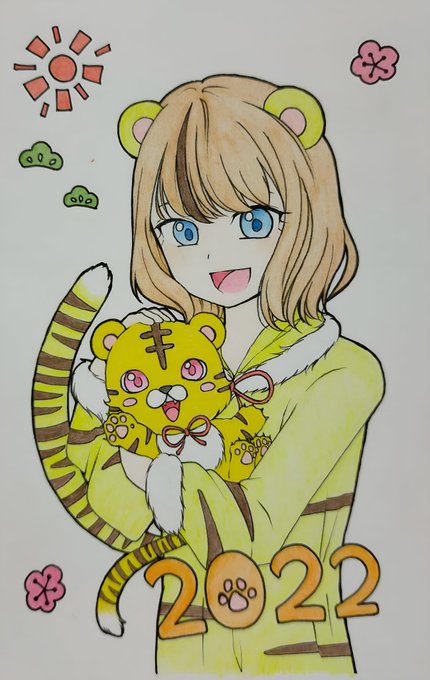 1 11 あけましておめでとう!!🐯☀🎀 #イラスト #手描きイラスト #色鉛筆 #寅年 #寅年イラスト 22/01/01 23:02