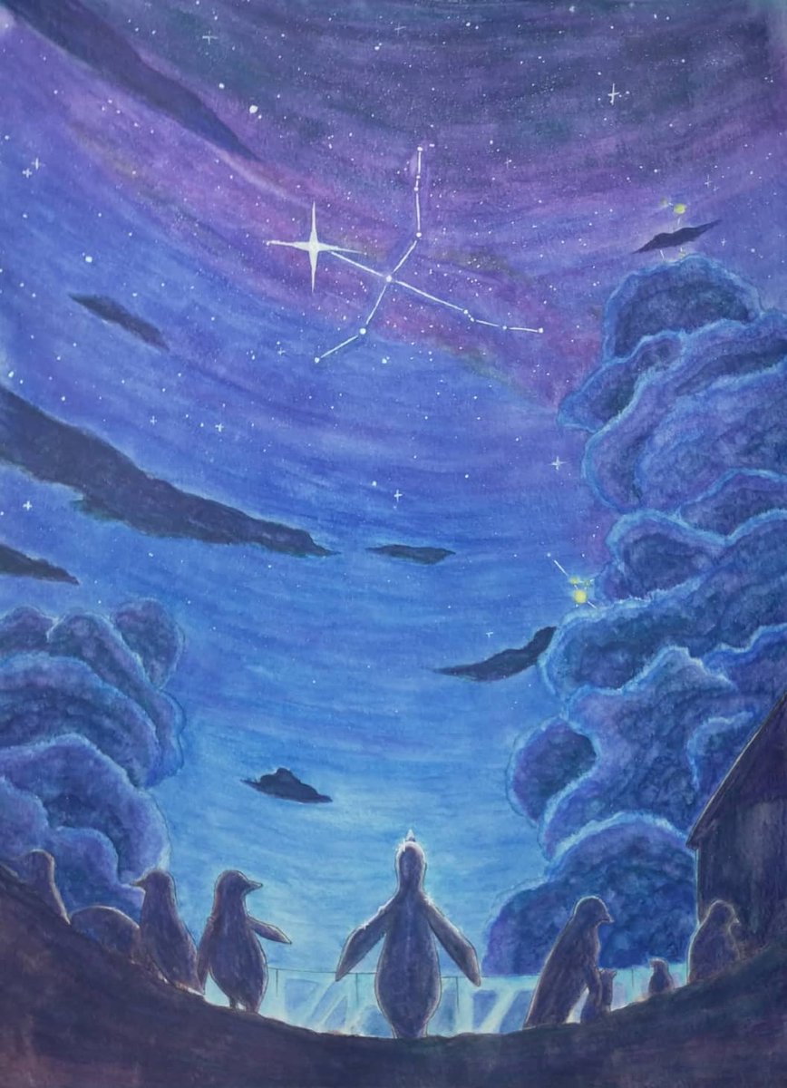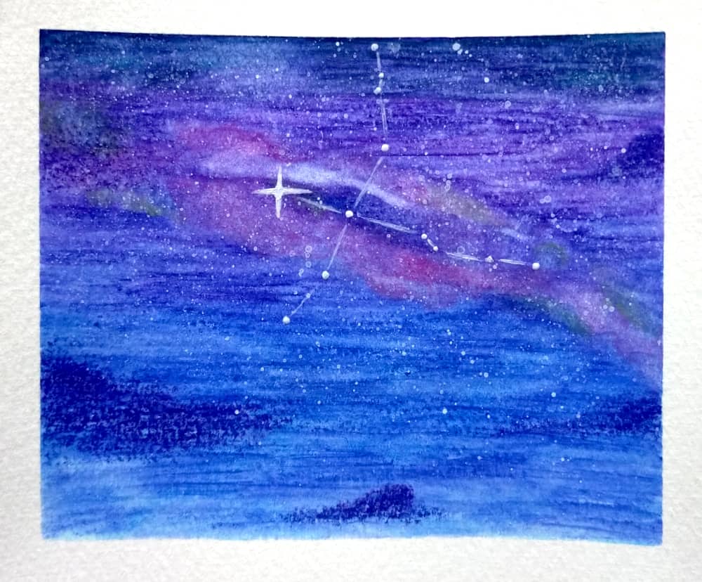 0 5 はくちょう座 #イラスト #アナログ #水彩色鉛筆 22/06/28 09:31