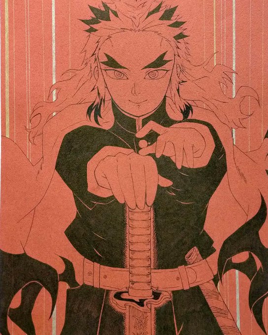 最近絵描けてないので過去絵(1年前くらい) #イラスト #模写 #鬼滅の刃 #煉獄杏寿郎